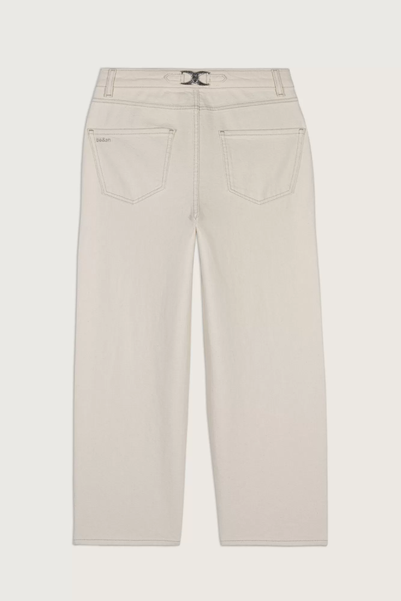 Le Jeans Aime Est Un Must Have De Notre Vestiaire Estival ! En Denim De Coton Ecru, Il Affiche Une Coupe Flare Sept Huitieme Qui Devoile La Cheville Et Une Taille Haute Pour Une Allure Elancee. La Poche Arriere Est Brodee Du Logo Signature Ba&Sh Et Les Passants De Ceinture S’Ornent Du Detail En Plus : Une Boucle En Metal Silver Gravee Aux Inspirations Western Dans Un Esprit Bijoux, A Mettre En Valeur En L’Associant A Un Crop Top Et De Jolies Sandales.